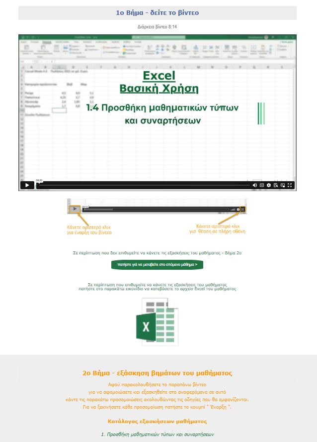 ένα ολοκληρωμένο Μάθημα με Βίντεο Θεωρία και Εξασκήσεις για αφομοίωση της θεωρίας.